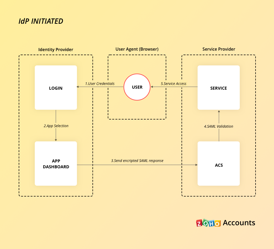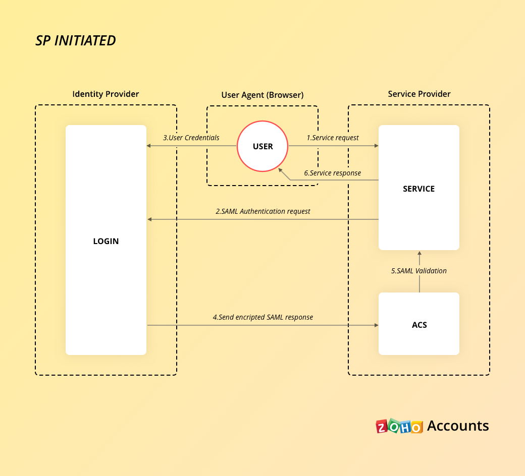 通过 SAML 的 SSO 涉及到 Zoho 信任您的 IdP 提供的断言,以向您的用户授予访问权限。 此信任必须通过在您的 IdP 和 Zoho 配置 SAML 来建立。