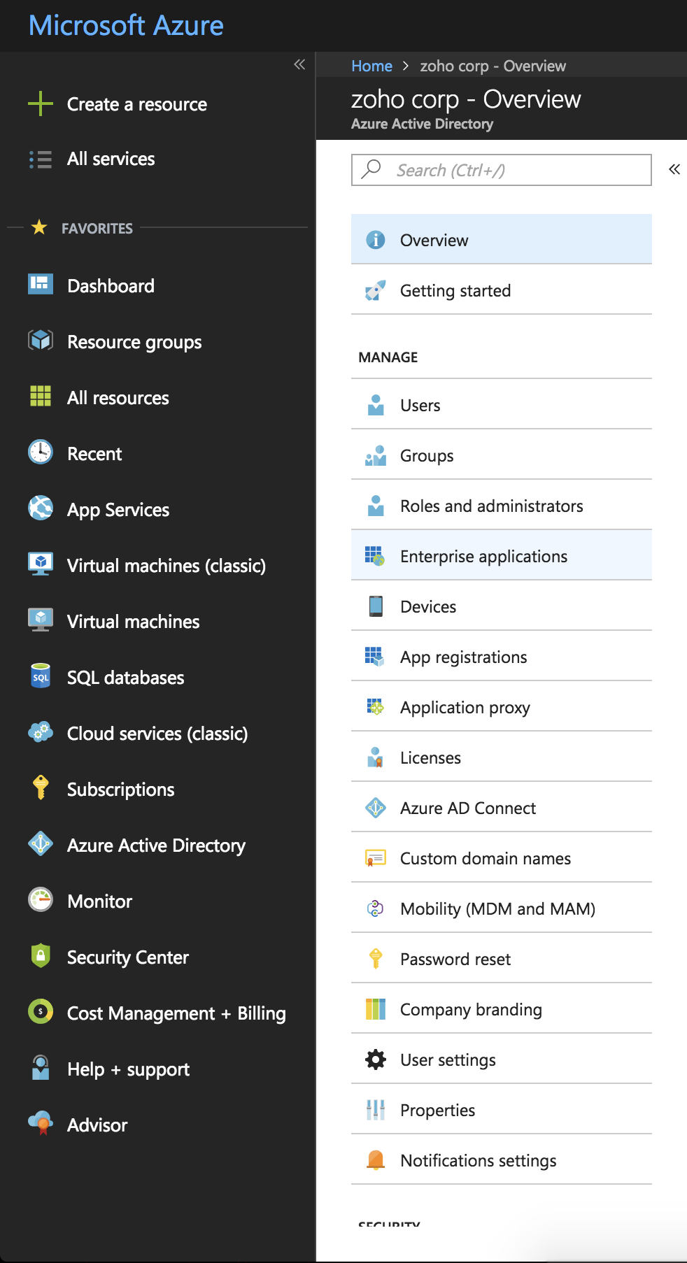 - 单击左侧导航菜单中的 Enterprise applications(企业应用)。