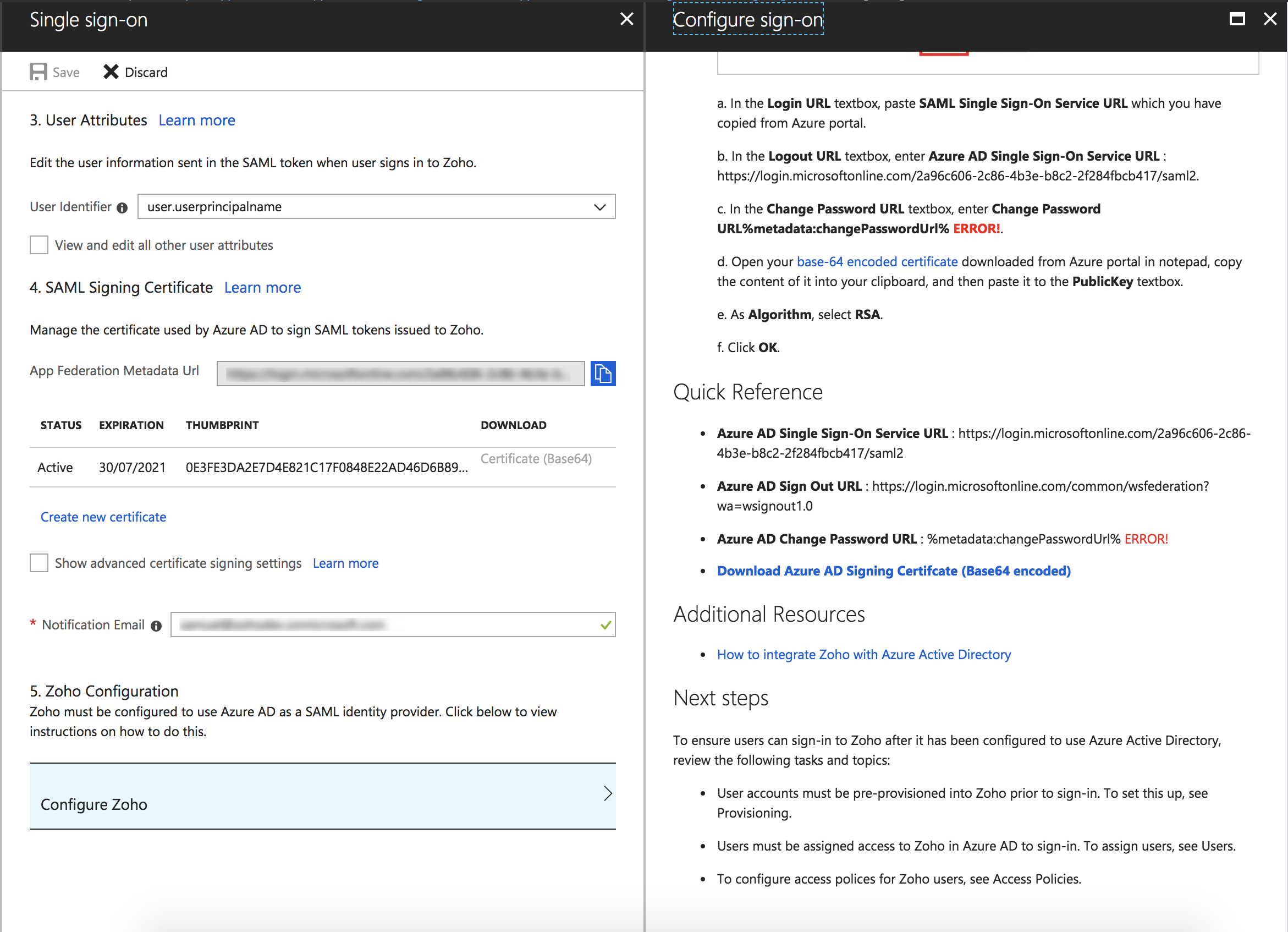 - 在 Zoho 配置单点登录 URL 和实体 ID URL。