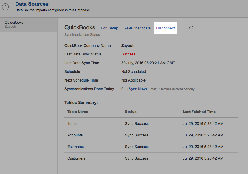 - 如何断开我的 Quickbooks Online 与 Zoho Analytics 的连接?