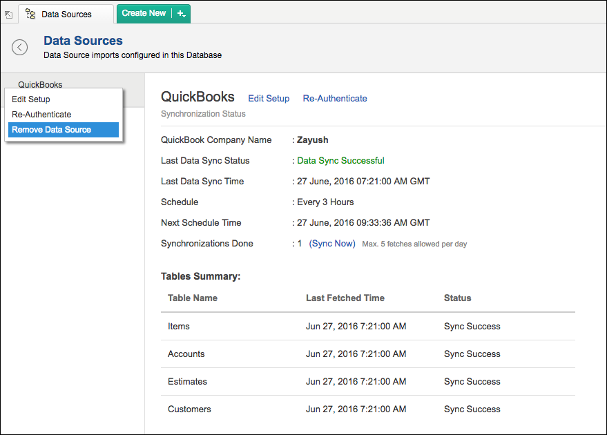 - 我如何将我的 Zoho Analytics 数据库与 Quick Books Online 重新连接?