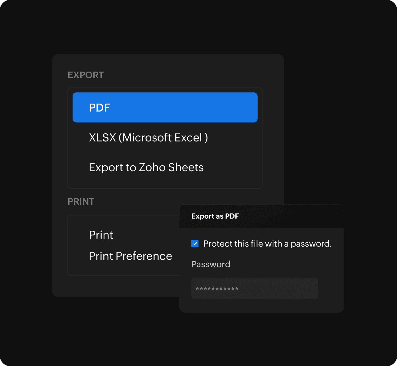 支持PDF/电子表格导出及直发邮件,可为机密文件添加密码保护。亦可基于报表数据创建在线协同表格,实现动态数据协作。