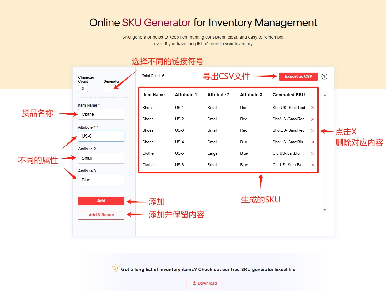 SKU(库存单位)生成器是一种帮助商家自动或半自动创建SKU编码的工具,确保编码唯一性、易读性、可扩展性,适用于电商、零售、仓储等场景。以下是SKU生成器的详细指南: