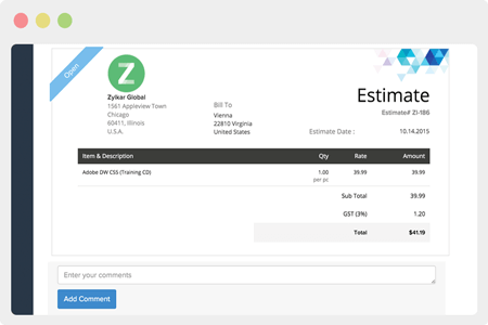 使用我们的Zoho Sign集成来获取客户数字签名的估算值。 通过更安全的批准流程,使您的客户放心,并获得与他们进行的交易的切实证明。