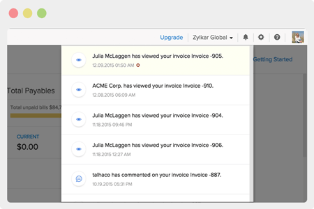 当客户查看、接受、拒绝、评论或付款时您都会得到通知,无需担心待付款的状态。