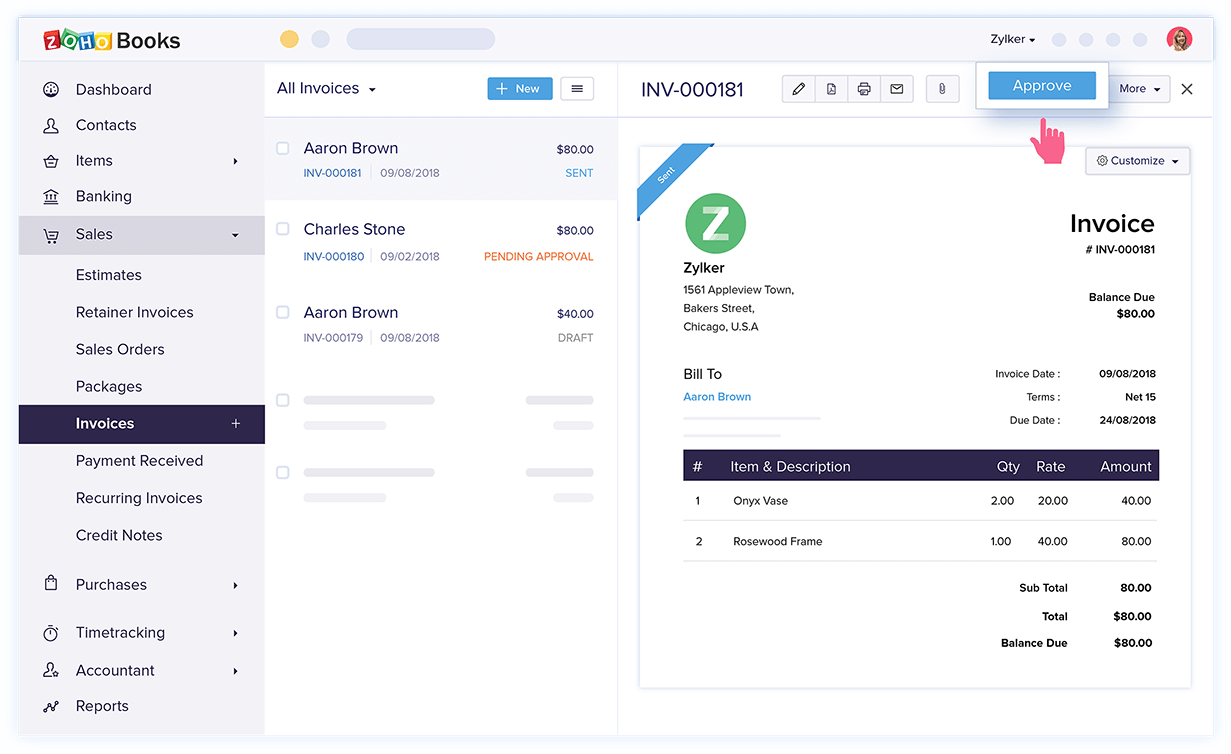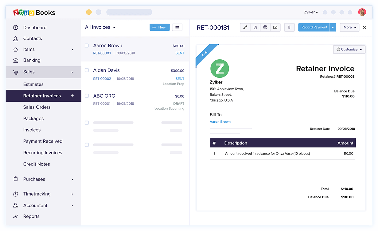 Zoho Books进销存让收取付款更为简单。可设置自动付款提醒,从现金到支票再到网上支付,您的客户可以选择不同的方式进行付款。
