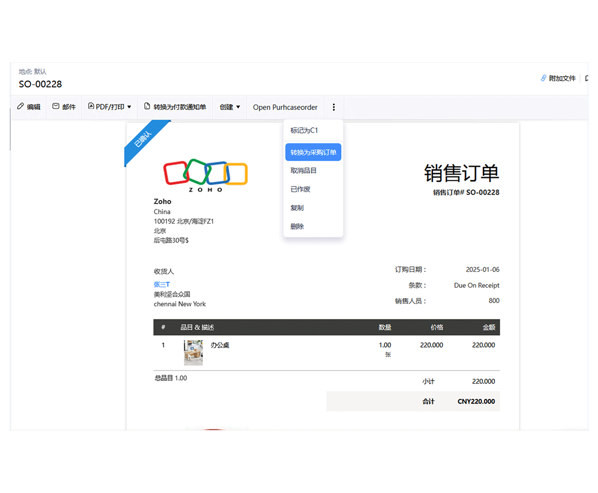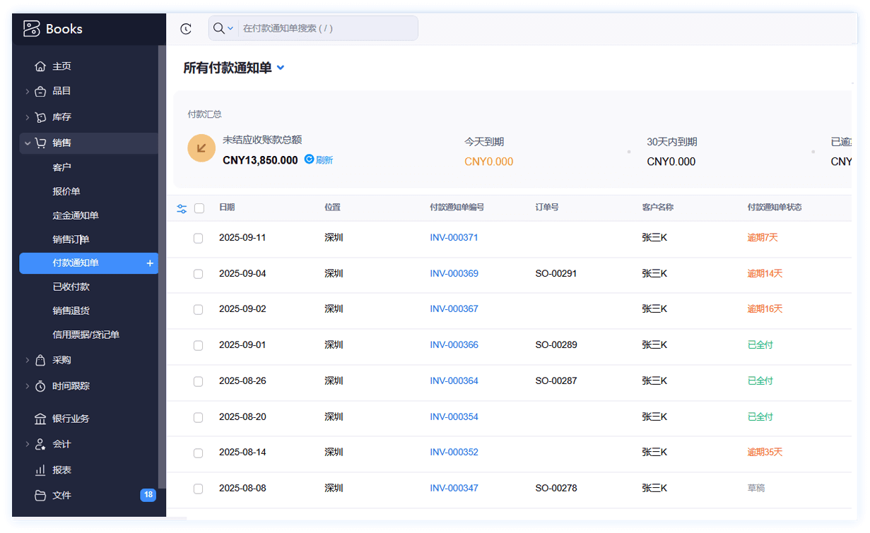 每一笔订单都会自动记录交易明细,并可轻松生成账单发送给客户。