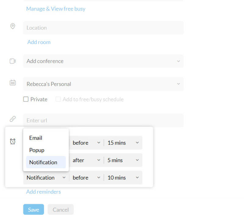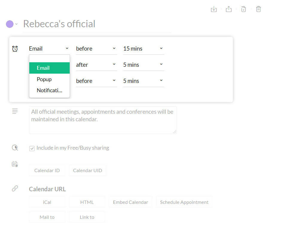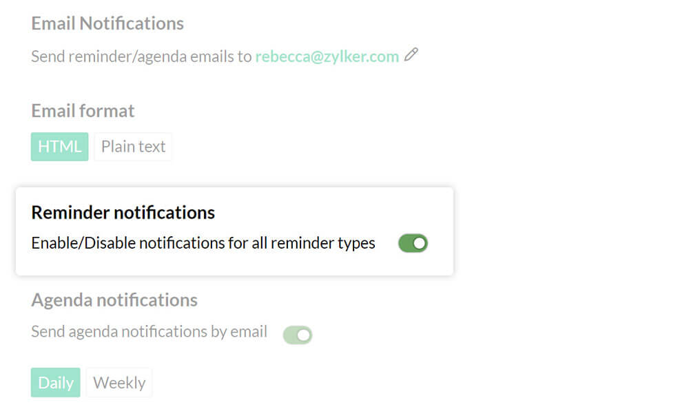 不再错过重要信息。以电子邮件或 Zoho Calendar 内弹出通知的形式接收“请回复”状态更新和活动提醒通知,及时把握最新信息。