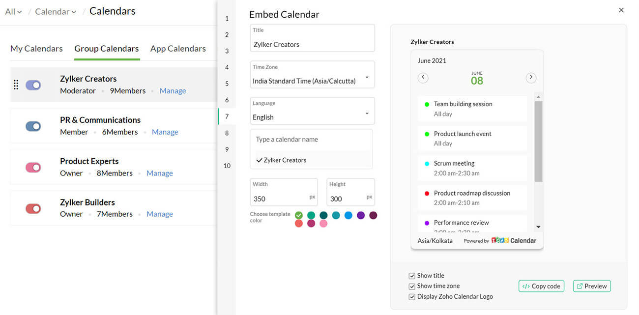 创建群组日历并将其嵌入到网站中,让全世界了解您的团队的日程安排。