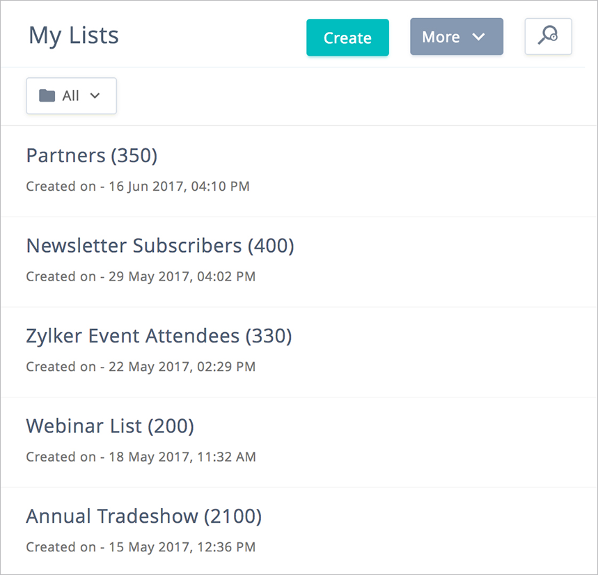 将多个来源(包括 Zoho CRM、Google 和 Office365)的订阅者导入 Zoho Campaigns。映射 CRM 中的现有字段并创建自定义字段,添加更多有关订阅者的信息。Zoho Campaigns 还可以自动处理无效/垃圾邮件/已取消订阅的电子邮件地址。