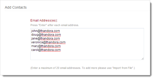 - You can add contacts to the maximum of 20 email addresses.