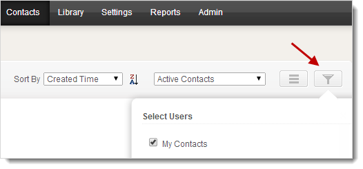 ) present on right hand side of the bar. - Click the Filter icon and select the user to filter the contacts.
