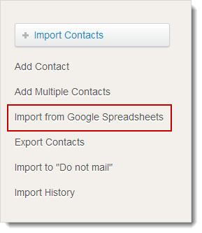 - In Contact Management page, click Import from Google Spreadsheets option (present on the right hand side).
