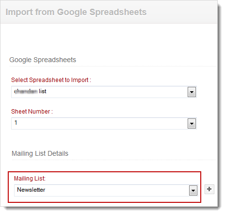 - Also, select the mailing list; you want to associate the Google spreadsheet to import contacts.