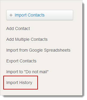 - In Contact Management page, click Import History option (present on the right hand side).