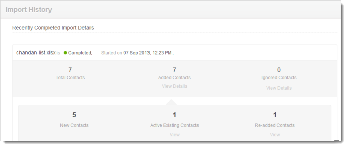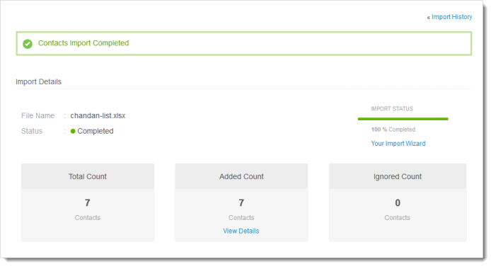 Once the import of contacts is done, you can view the import details in the import history page.