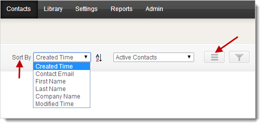 You can sort contacts by clicking the menu icon present in the ribbon situated beneath Manage Contacts.