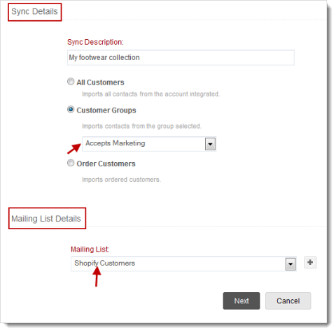 Import your Shopify contacts using our Sync Contacts from Shopify option. This is the easiest way to import the contacts into mailing list present in your campaigns account.