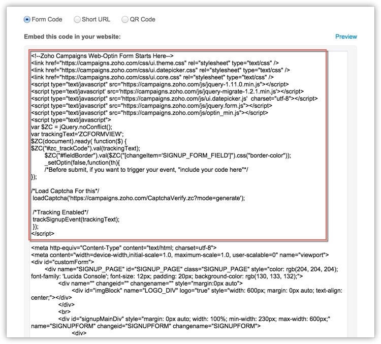 This is a conventional way to add sign-up form to your website by copying the code generated based on sign-up form. You can paste this code wherever you want to display the sign-up form on your website.