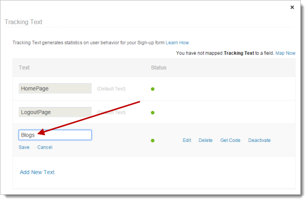 Once the tracking text is added successfully, you can generate a sign-up form code based on the tracking text and embed the code in the required sign-up page.