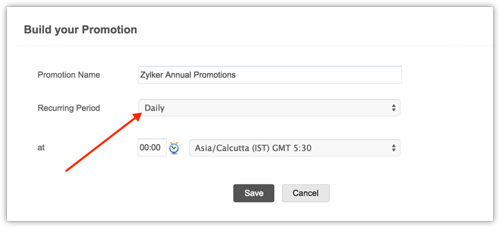 - You can select the recurring period as daily, weekly, monthly and yearly for calendar based promotions