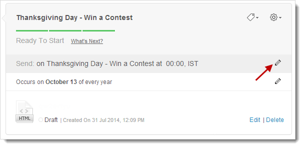 - Go to the message and click the Edit icon corresponding to Send Settings.