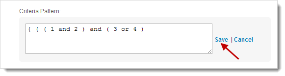 However,the required pattern is ((1 and 2) and (3 or 4)). This modification can be made using the Change Pattern option. The required pattern is input and saved as shown below: