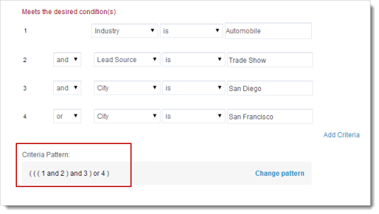 - You can edit the criteria pattern by making the changes in bracket positions as well as AND and OR in defined conditions.