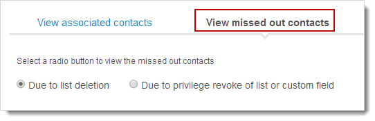 - Due to List Deletion - If a target list is deleted, the "add to target list" action is paused and missed-out contacts are moved to "View missed-out contacts" section of workflow reports. However, a workflow process is stopped when a master list is deleted.