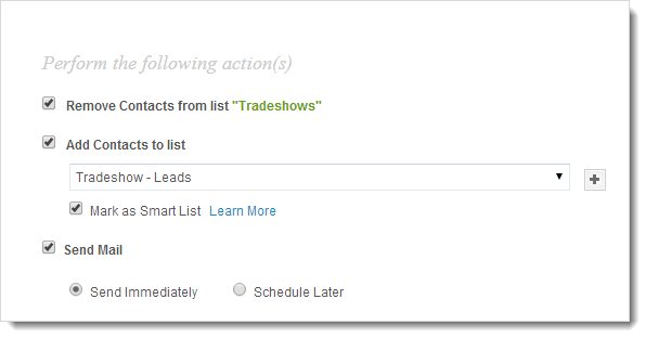 - Add Contacts to list - Contacts are added to target list when they meet the defined conditions.