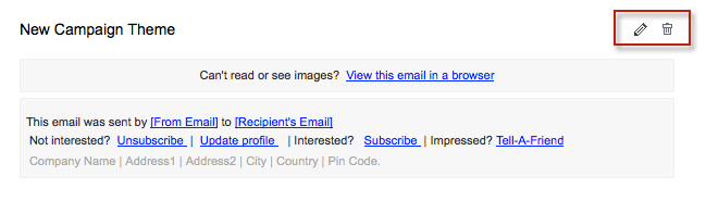 To create your own theme, from the Settings tab, in the Campaign Themes section, click Add New Theme button. A page for naming the new theme appears.