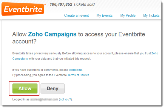 - Click Allow (for first time users) - This is mandatory for successful integration of your account.