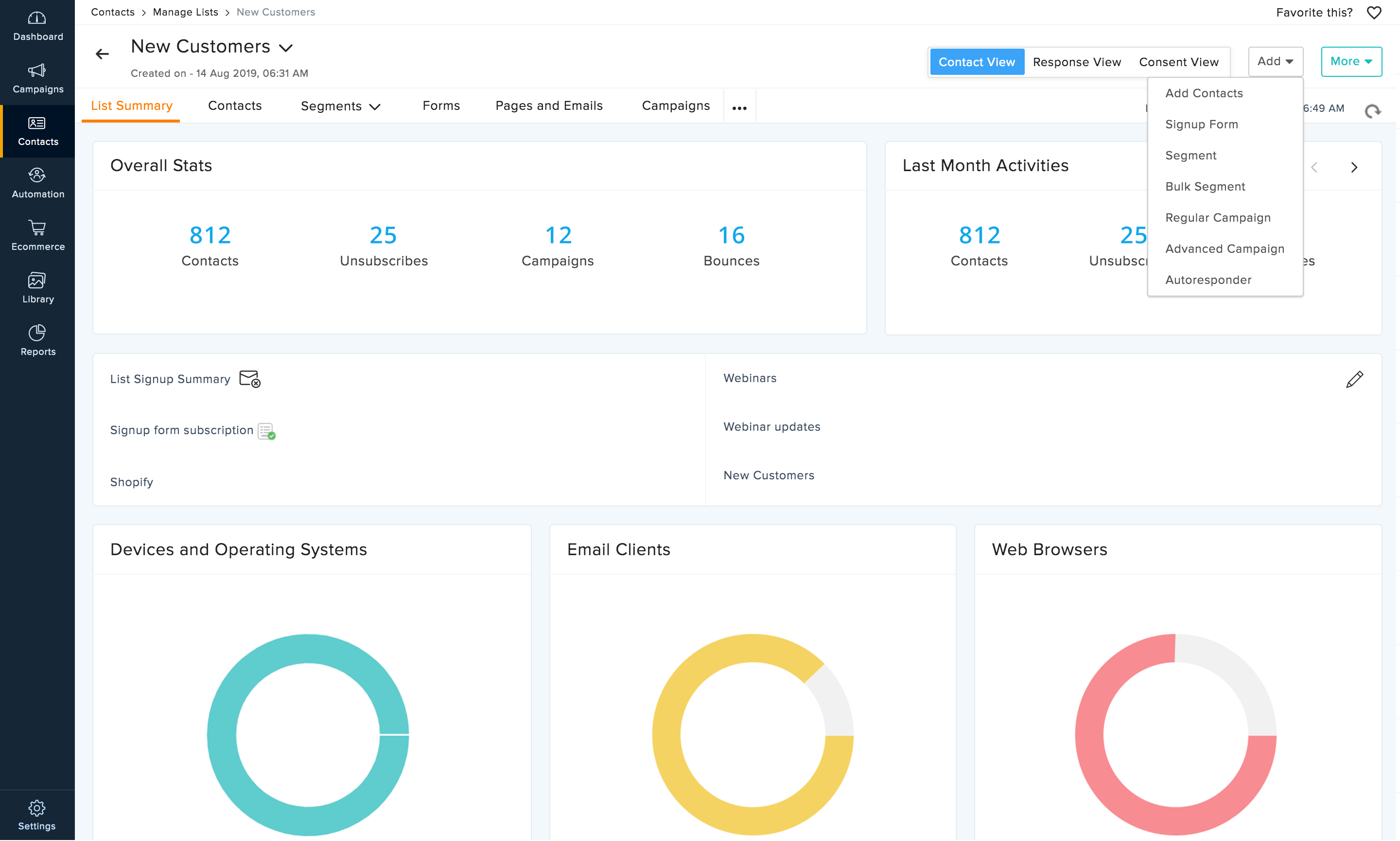 借助这项功能,您可以轻松整理和扩展邮件数据库。您可以从 Excel Sheet、Zoho CRM、Eventbrite、SurveyMonkey 等不同的应用导入联系人详细信息。将适当的内容发给合适的受众,您可以通过人口统计学信息、所在地理区域、行为特点等方面自动对联系人进行细分,以开展有针对性的营销活动。
