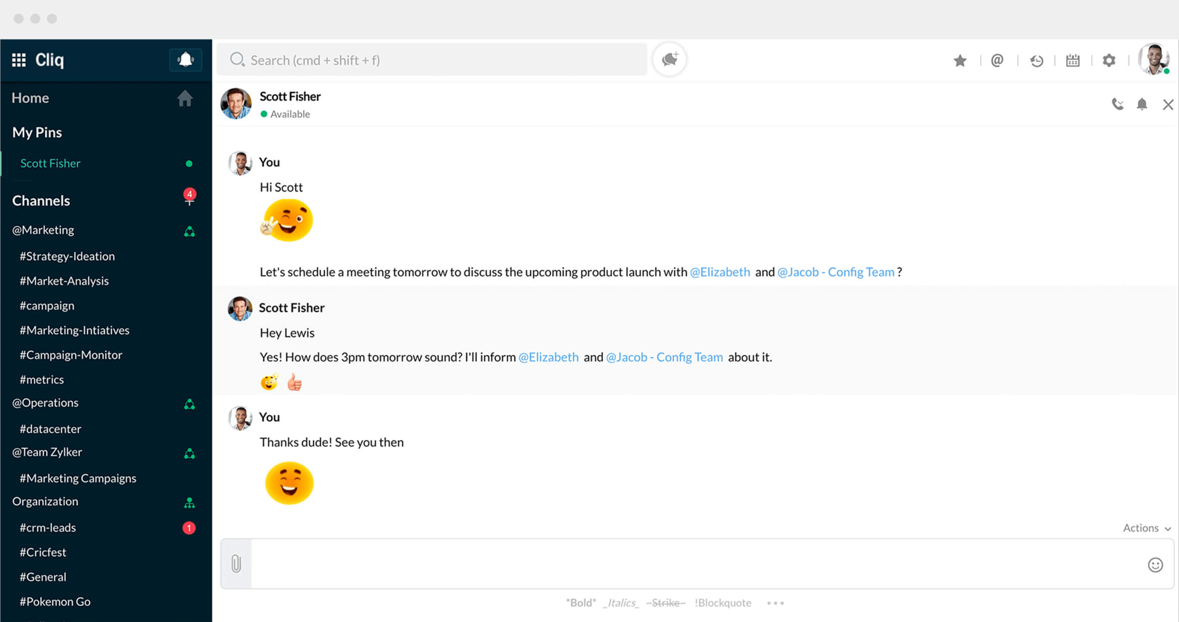 使用Cliq里的表情符,让您的工作对话气氛更加轻松。