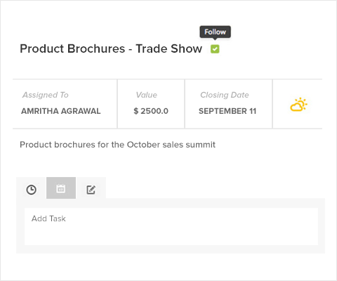 Follow the companies and contacts that are important to grow your business. Don't let your business deals slip through cracks by closely monitoring progress through feeds.