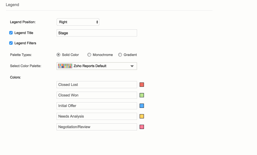 此外Zoho Analytics还增加了图表颜色。可以对某个图表,或者某个数据库里的所有图表应用某种颜色。如果对系统默认提供的颜色都不满意,还可以自定义颜色。