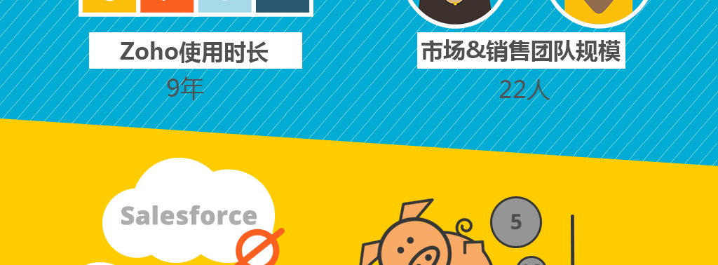 以下以信息图样式表现该公司如何使用Zoho产品来运行整个销售和市场业务。