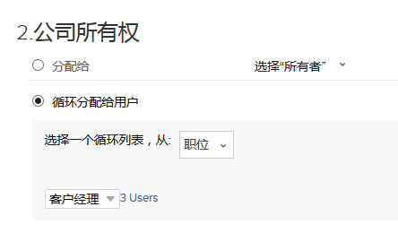在这里可以选择某几个销售员进行轮流分配,也可以如上图所示轮流分配给特定职位的几个人。