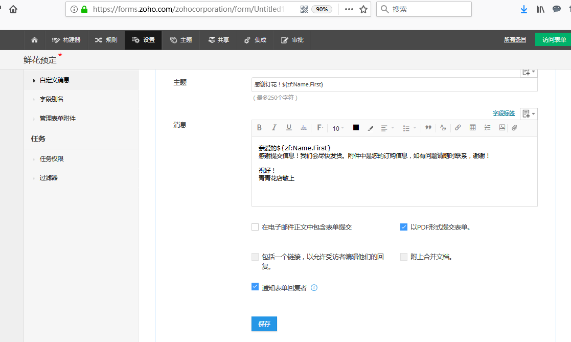 那么如何设置这样一封自动邮件呢?使用在线表单制作工具Zoho Forms,一切都很简单。