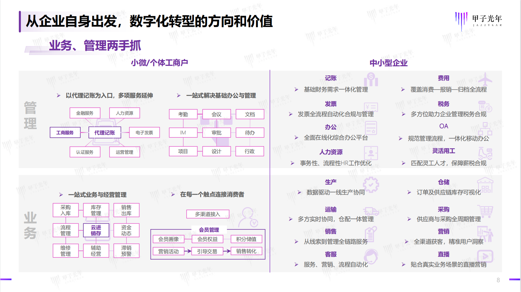 · 中小企业的数字化转型需兼顾业务与管理,以实用为目标