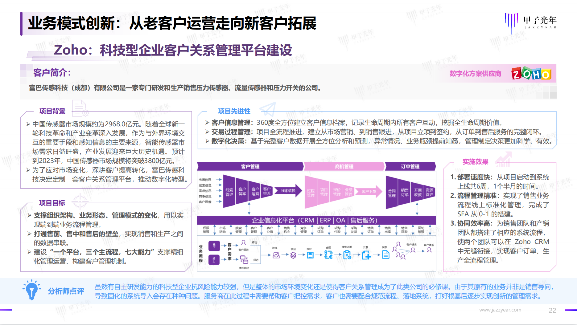 作为深耕数字科技的主流企业,成立至今,Zoho一直专注于产品力的提升,以成熟的技术体系与优质的产品服务,为市场输出了不少切实可行的解决方案。此次的报告,更是将其客户成功案例进行收录,成为业务模式创新的实践范式。