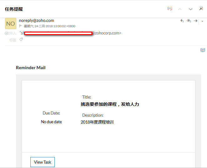 这样,到了规定日期,Zoho Mail就会自动发送提醒邮件:
