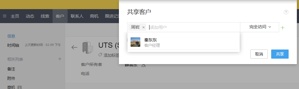 可与其他CRM用户共享单个客户数据,并为每个用户提供不同的访问权限。