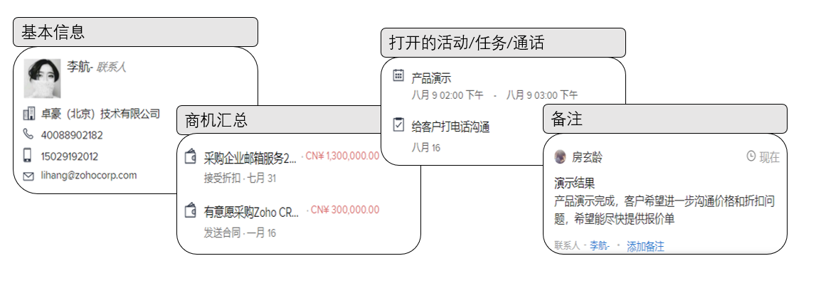给客户写邮件的时候,SalesInbox还能提供该收件人的历史信息(比如购买了哪些产品,提了哪些工单等),供你参考。