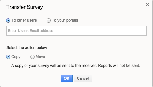 有时我们做了很漂亮的问卷,朋友也想要一份,或者我们想把问卷连同其报表一起转移到另一个账户下。有了“问卷转移”功能,这一切都变得非常简单了。