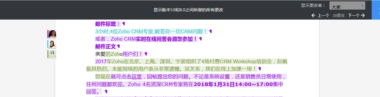 好在现在有了Saas,在线软件,word文档的多人、实时、异地协同编辑不再是问题了。这样的产品有很多,以Zoho Writer为例,截图说明如下。