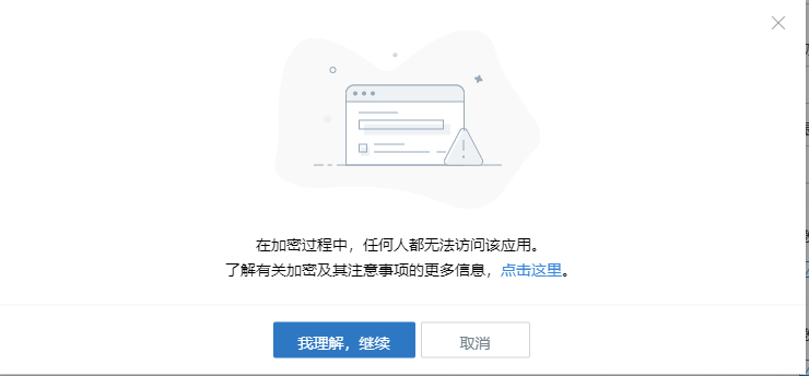 2.随后会弹出提示,单击“我理解,继续”之后,会有加密进度显示。