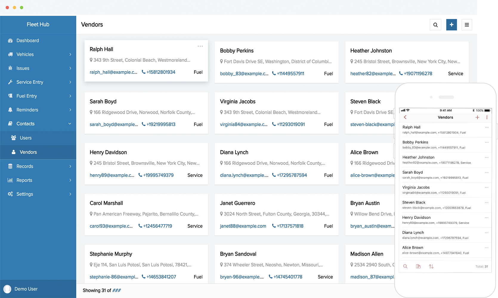 使用内置数据库管理系统跟踪组织中的每一名驾驶员、服务供应商和员工。添加照片和联系人详细信息,并为每个人生成带有 ID 编号的可打印员工标签。
