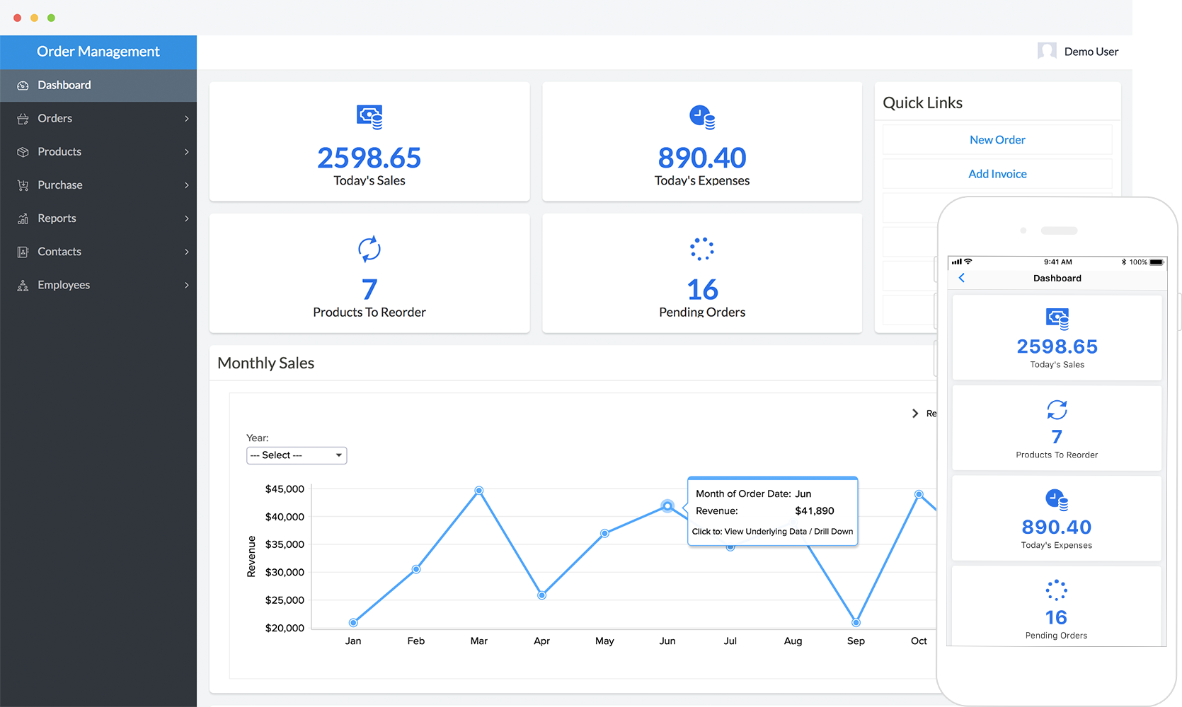 您在电脑端创建的每个应用系统,都会在移动端自动生成完全优化的原生版本。无论身处何地、使用何种设备,皆可畅享这个订单管理系统的全部功能,让无限商业潜能尽在掌中。