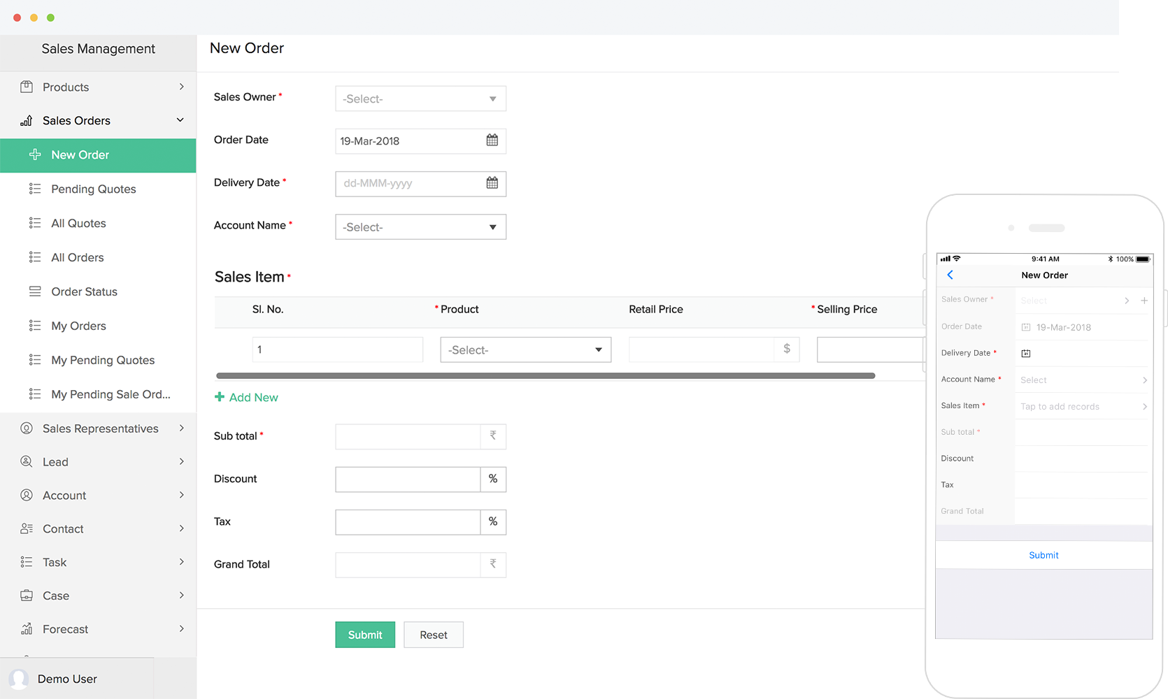 为了搭配您在计算机上构建的每个应用程序,都有一个完全优化的原生应用程序在您的智能手机上为您服务。在任何位置、任何设备上尽情享受您的销售追踪应用程序的所有功能。您可以随时随地获得无限的业务功能。